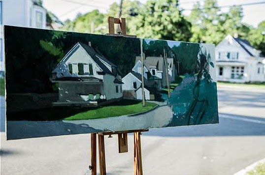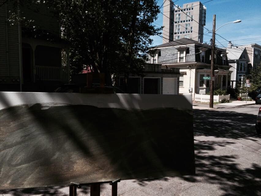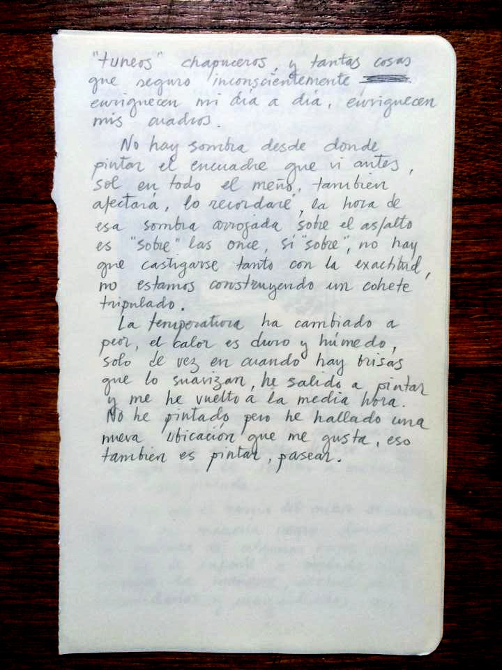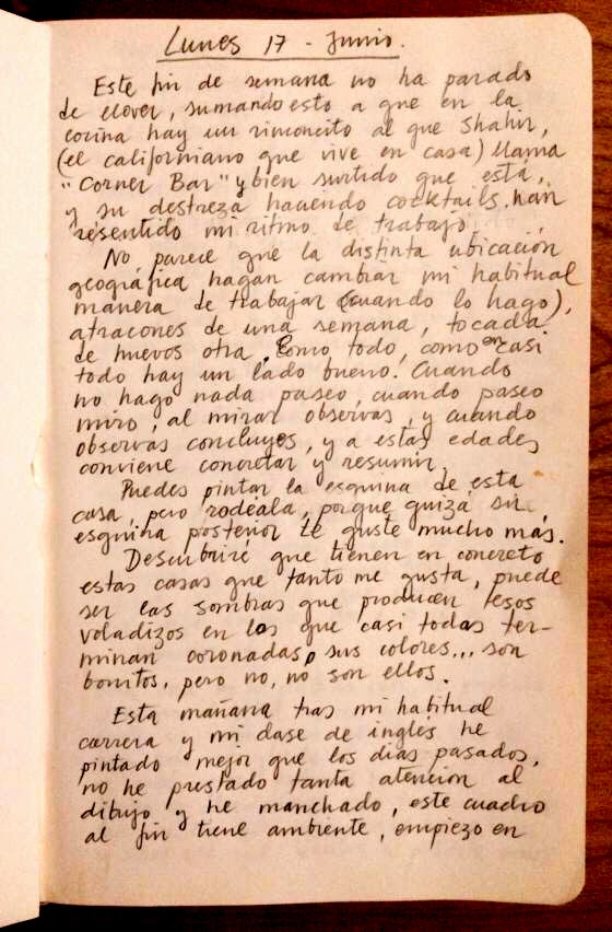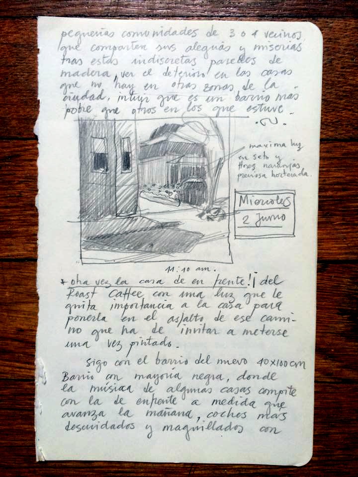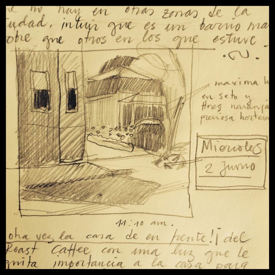 Ayer mientras escribía mi diario desde el escaparate de Roast Caffee me fijé en que a las 11 había unas sombras preciosas en la casa de siempre , hice un esquemita sobre papel, se preveía día nublado y así ha sido, ni una sombra sobre el asfalto, el boceto me ayudaría y es un ejercicio que me encanta hacer, saber la sensación que quiero, no saber como conseguirlo y no parar hasta verlo.