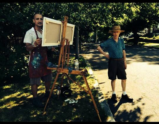 Leo, my first friend in Boston, cómo os quedáis con mi inglés? Flipando verdad? Ya puedo con ese nivel ser Presidente de esa cosa q se llama España. Es un encanto este niño, no le entiendo nada pero mola y además habla bajito cosa q es muy de agradecer. Y él solo decidió q su caballete lo pondría a una distancia prudente del mío.